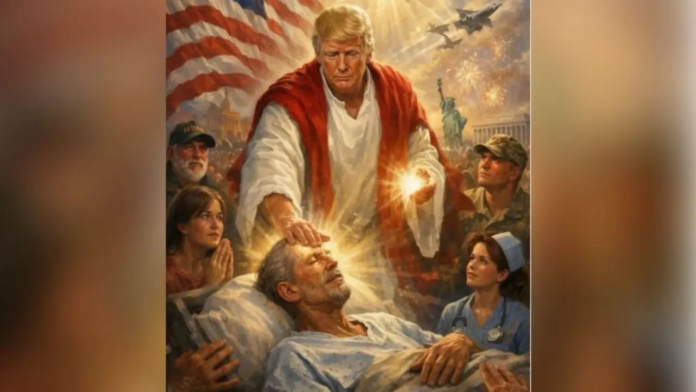 The picture shared by Donald Trump showed him in a saint-like image, where he is seen healing a sick person. Social media reacted strongly to this picture.